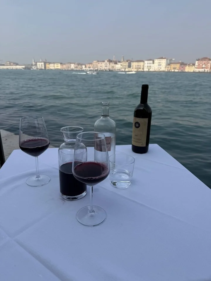 When we finally left the factory it was lunchtime, and we didn’t have to walk more than about 200 yards to discover one of the joys of the outer islands - a table right on the canal with an un-impeded view across the water to Venice itself. A far cry from the Piazza San Marco.