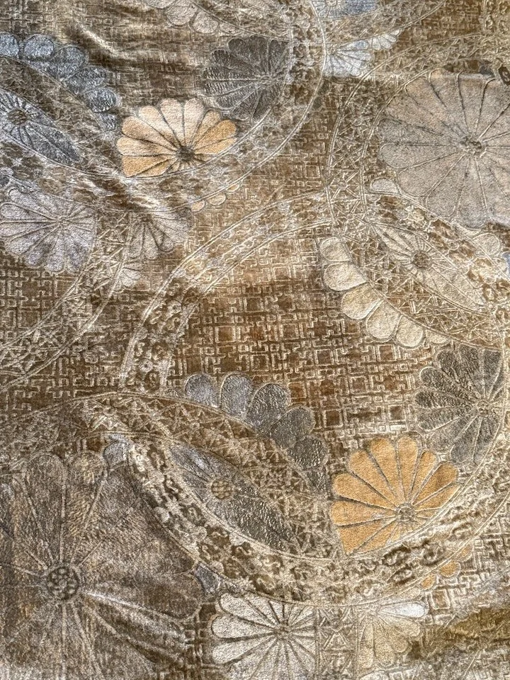 An early, particularly intricate example. Printed velvet.