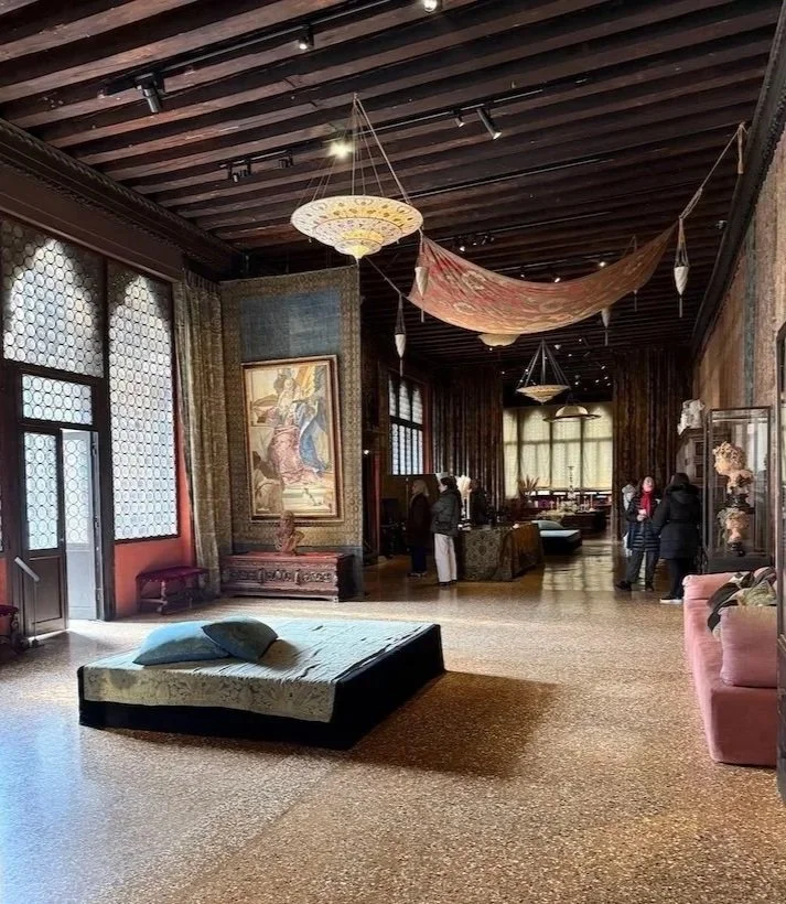 Vijay does not share in my textile obsessions, but he’s usually game for whatever, god love him. Also, because the museum itself is housed in Fortuny’s original Venice home and workshop, it gave us the opportunity to go inside one of these fabulous palazzos rather than walk past and wonder. And there was no line. Worth the price of admission in itself.