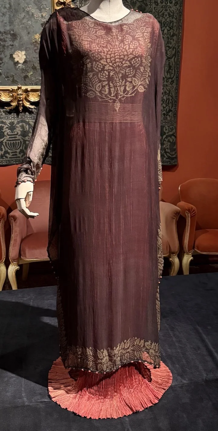 Together, they created the 1907 “Delphos” silk dress that would take the fashion world by storm and make Fortuny internationally famous. Henriette designed the dress, Fortuny a patented method of pleating the silk involving heat, pressure and ceramic rods. It was a closely guarded secret, and has never been replicated (or so claims the museum).