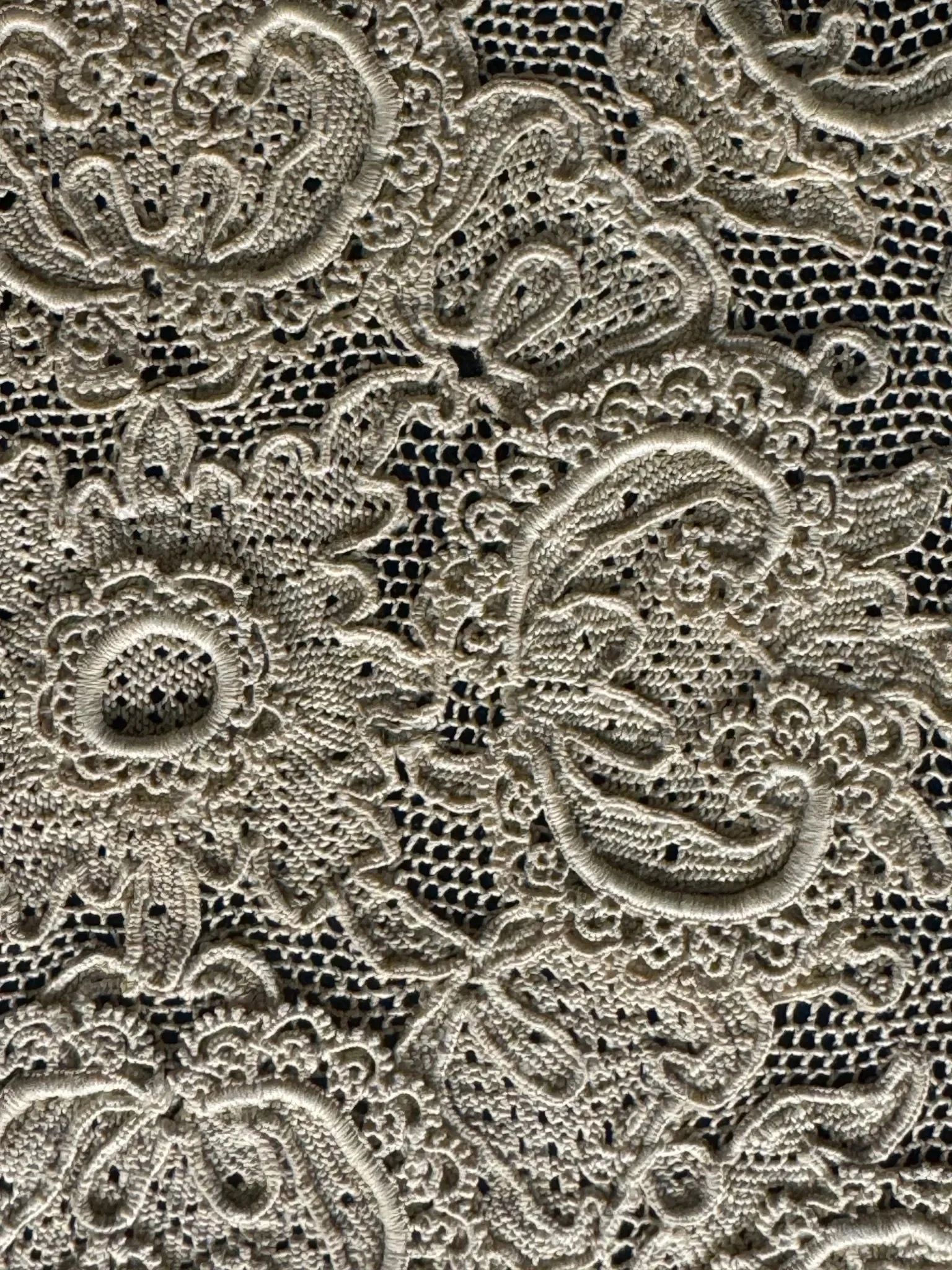 Machine-made lace arrived in the 1800’s, and after that production of hand-made lace declined, and it became an indulgence for the very rich (hand-made being more refined than can be made by machine). After World War II styles also changed and lace fell out of vogue entirely, being considered old-fashioned, as it is today. Handmade lace, meanwhile, is so labor intensive it is now almost exclusively made for the pleasure of making it.